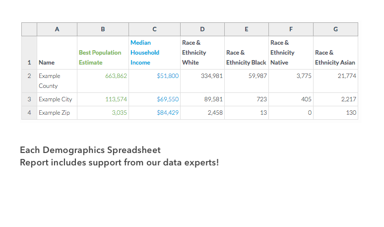 "Your starter report certainly saved me a considerable amount of time. I am just too busy to garner this needed data any other way. It truly would have taken hours of an employee's time or my own to get this much information. I was fortunate to find a company that had all the demographics that I needed and at a very reasonable price."